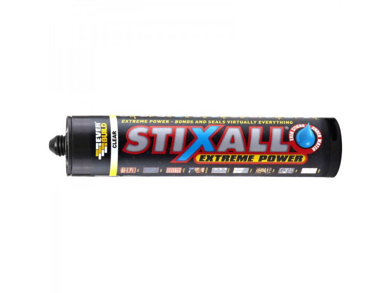 Everbuild 290ml Stixall Extreme Power Black is the ultimate combined building adhesive and sealant, based on hybrid polymer technology, with the most Extreme power to both bond and seal virtually EVERYTHING to ANYTHING in nearly all conditions, even under water or in the rain!Everbuild 290ml Stixall Extreme Power Black