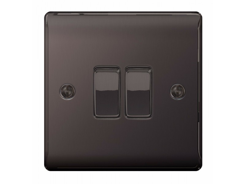 The BG Nexus Metal NBN42 is a 2 gang 2 way light switch finished in black nickel.