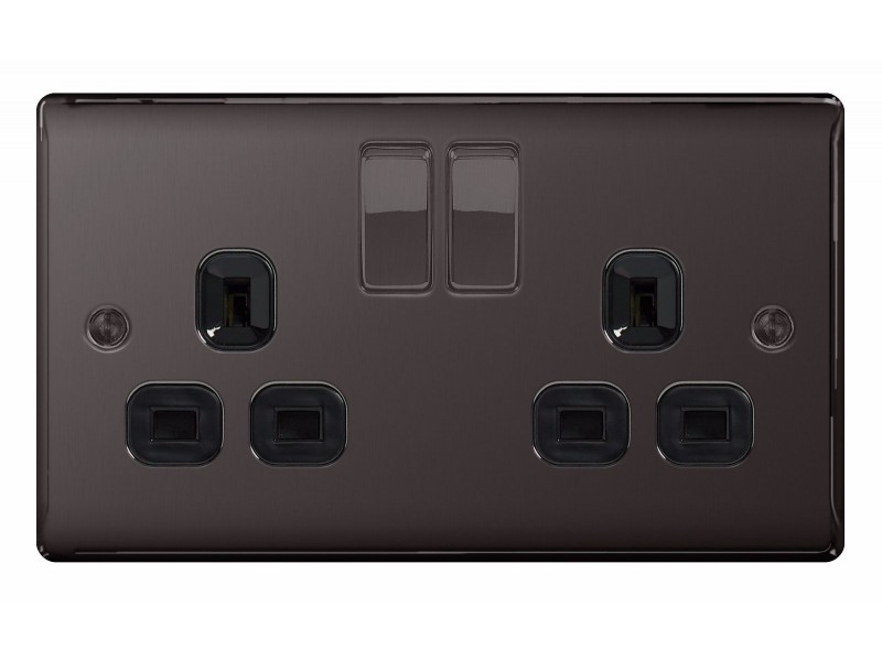 The BG Nexus Metal NBN22B is a 2 gang double pole switched twin socket finished in black nickel.