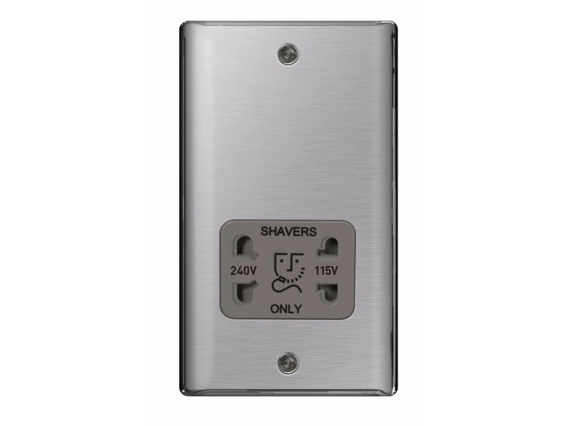 BG Nexus Brushed Steel Shaver Socket Grey Inserts