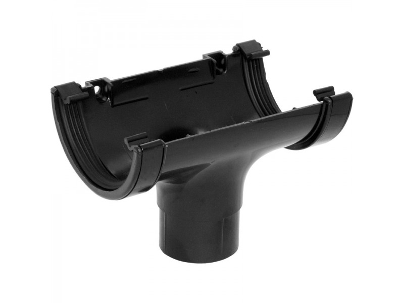 112mm Half Round Running Outlet Black. Made from uPVC for extra strength and durability.
