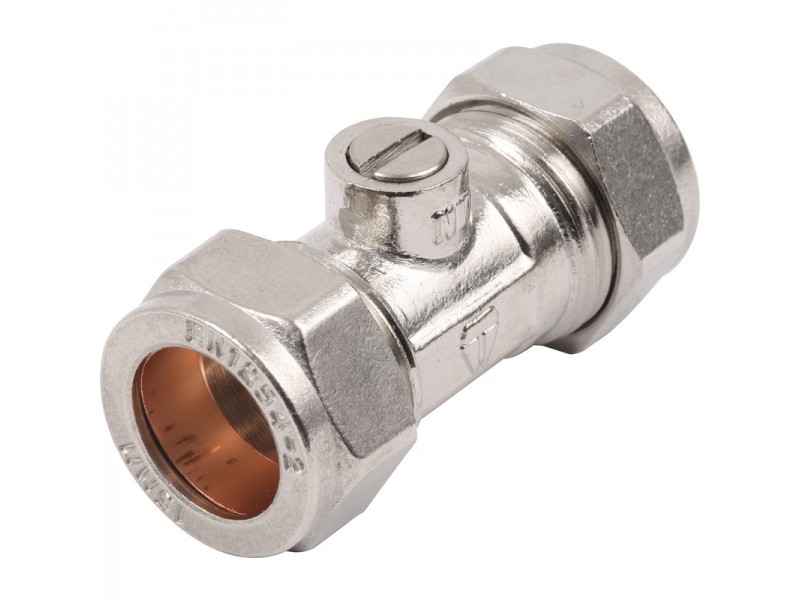 15mm Isolating Valve. Used in hot or cold water systems to isolate part of the system: avoids the need to drain down the whole system to carry out work. Compression fitting at each end.
