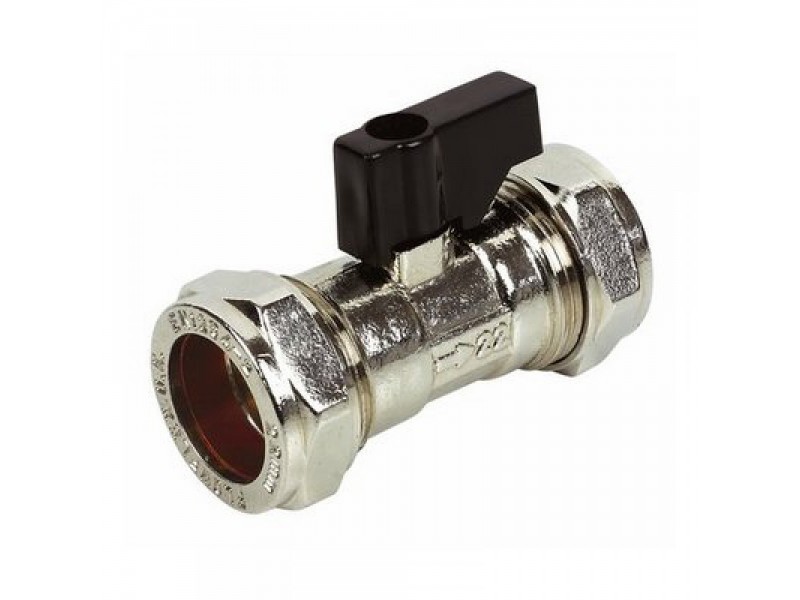 15mm Isolating Valve with Handle. Used in hot or cold water systems to isolate part of the system: avoids the need to drain down the whole system to carry out work. Compression fitting at each end.