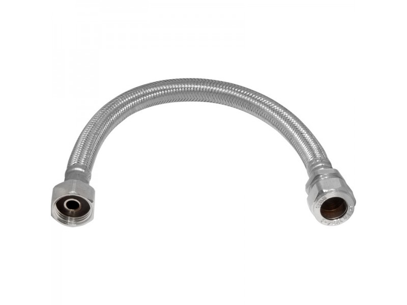 Flexible tap connector with 15mm compression on one end and an 3/4" female on the other. 500mm in length.