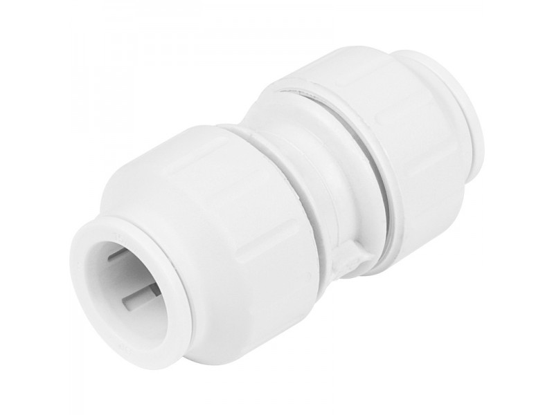 John Guest Speedfit 22mm Coupler White. Push-fit plastic fitting for the connection of plastic and copper pipe.
