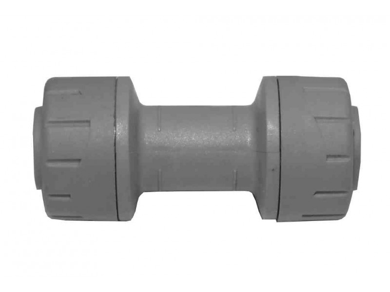 Polypipe Polyplumb 10mm Coupler Grey. PolyPlumb is a permanent grey plastic push-fit system for domestic hot and cold water supply, radiator and underfloor heating installations.