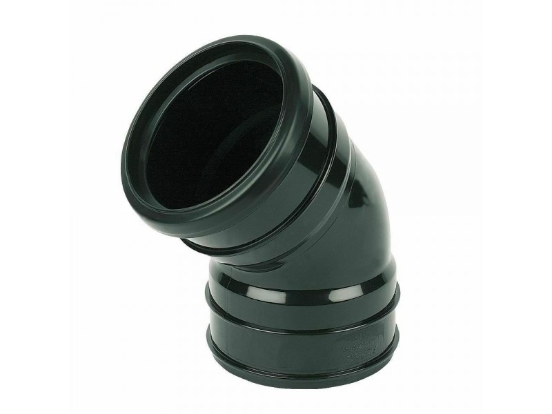110mm (4") Pushfit 45° Double Socket Bend in Black.
